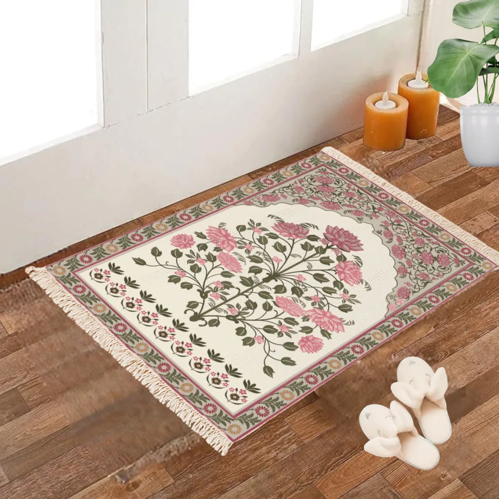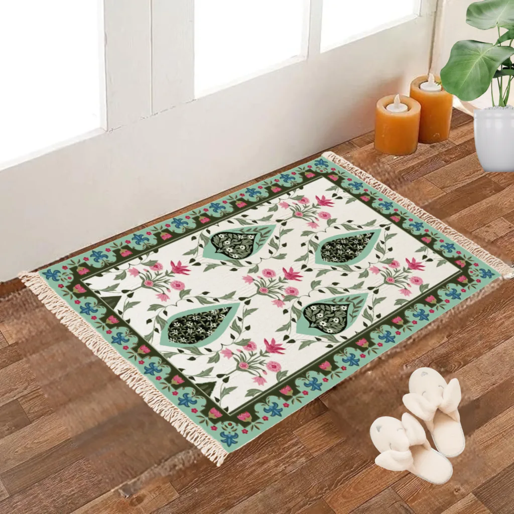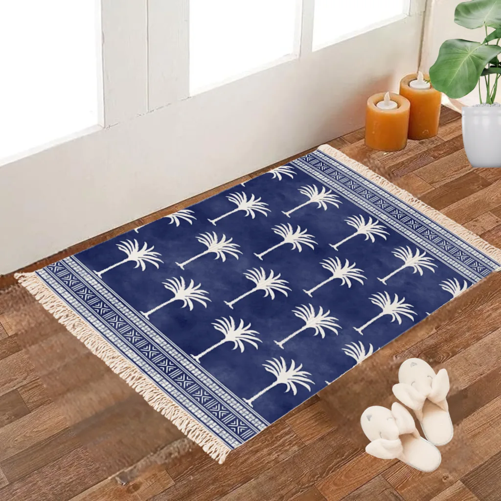 Lightweight yet durable, this dhurrie is easy to fold, store, and maintain, making it perfect for everyday use. Its versatile size makes it suitable for use as a small area rug, bedside mat, or even as an accent piece to highlight a cozy corner. The soft cotton weave provides comfort underfoot, while the vibrant print adds a modern, stylish finish. Whether you want to refresh your interiors or gift a piece of functional art, this tropical print dhurrie is the perfect blend of tradition and contemporary design.”