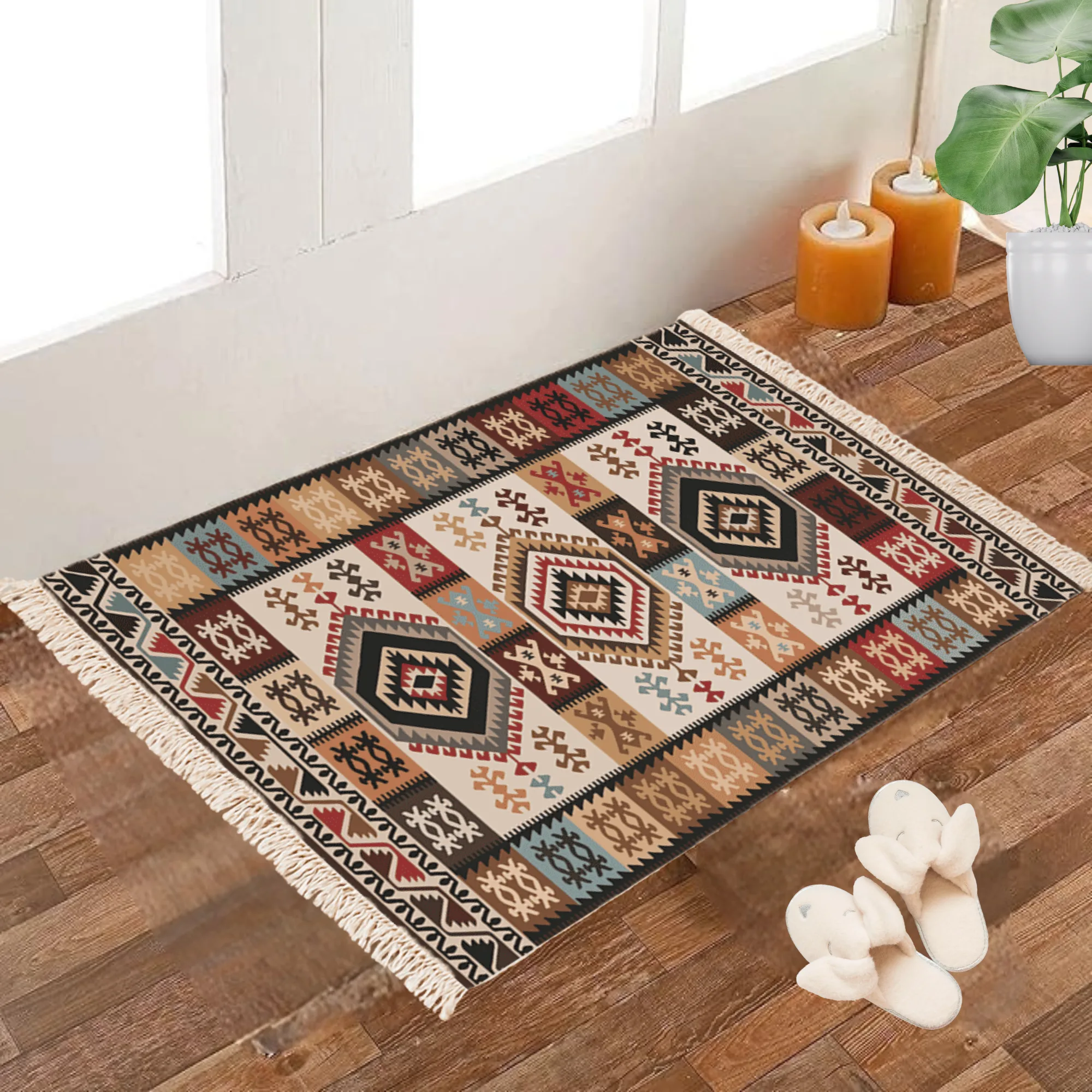 Usage: One Surface print. It is light weight and can be folded and is easy to maintain. This Beautiful rug comes with an Anti skid Backing. Machine Washable