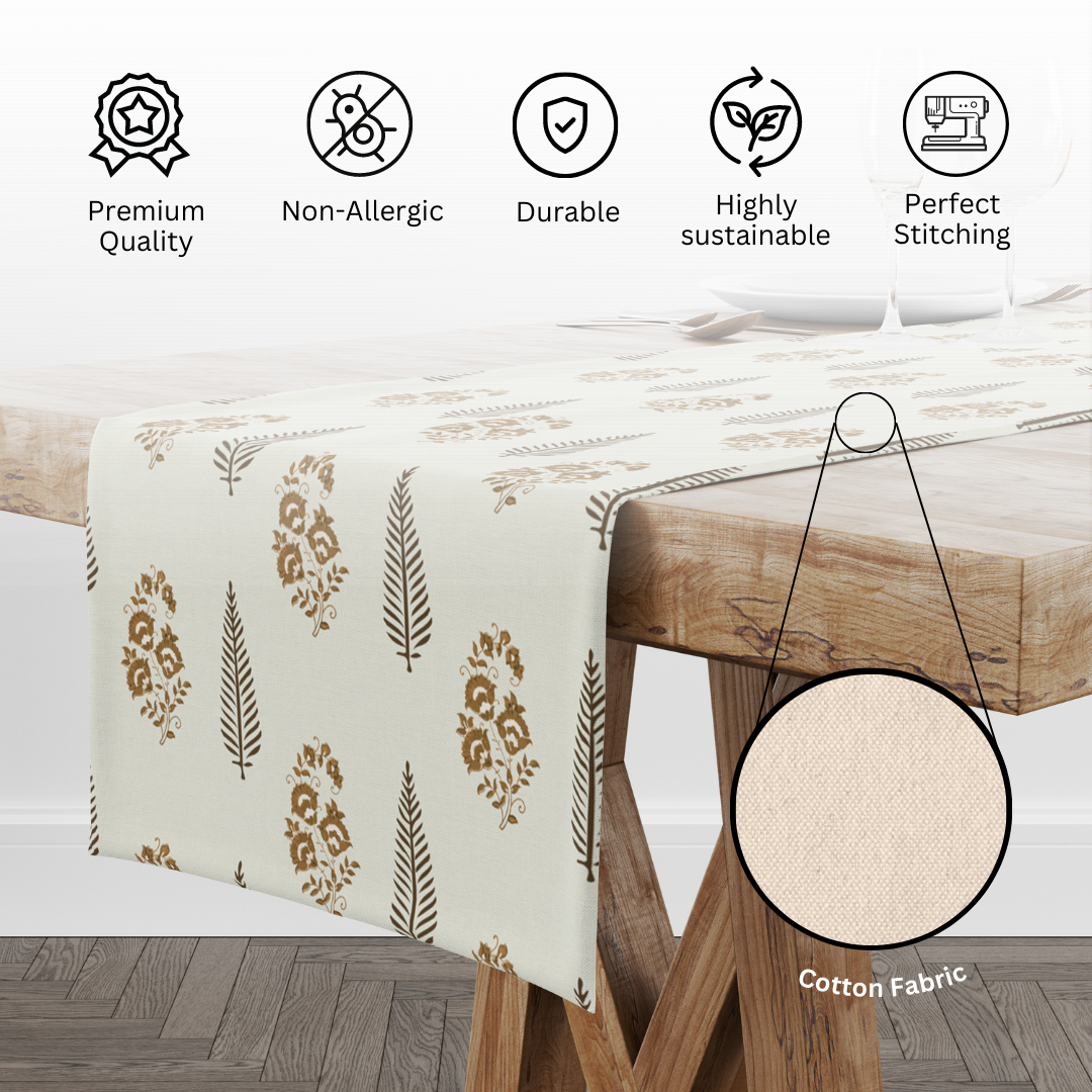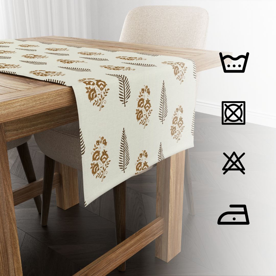 Made from 100% pure cotton, this runner offers a soft, breathable texture that drapes gracefully across your table. It’s lightweight yet durable, ensuring long-lasting use without sacrificing elegance.