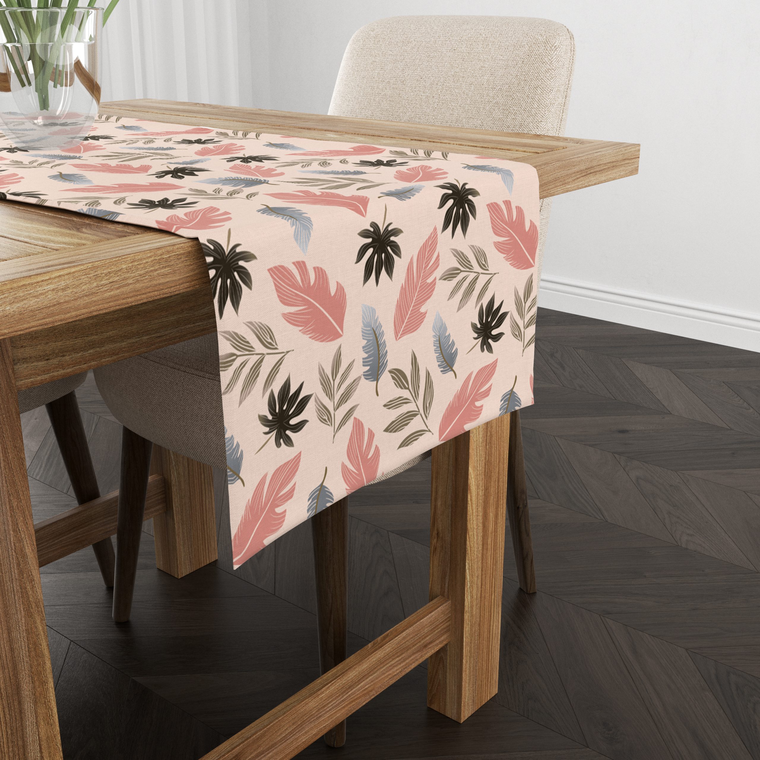 Tropical Leaves(Pink)| Table Runner/ Table Linen| Premium Quality| Kitchen Linen